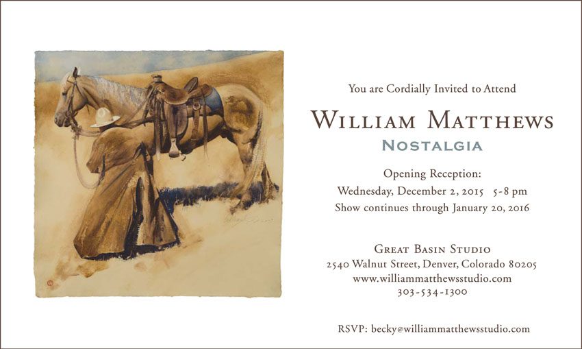 William Matthews annual holiday show. Please join us for the opening reception on wednesday December 2, 2015. Show will continue through January 20, 2016